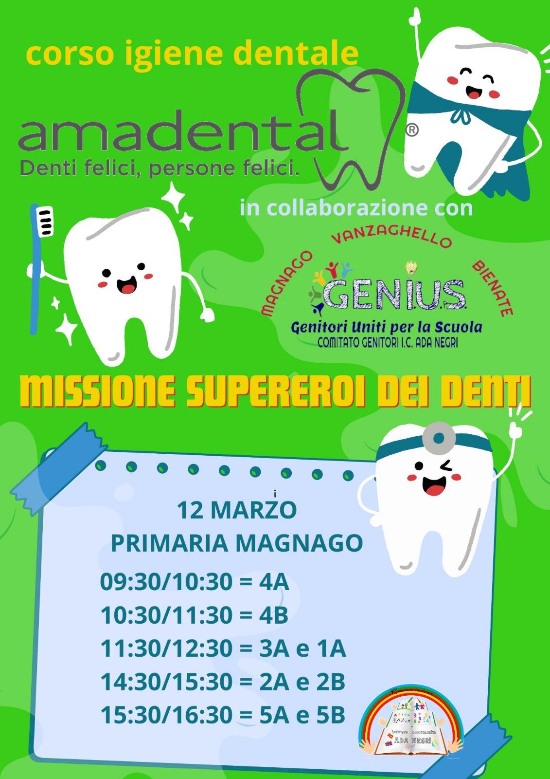 Il progetto di educazione all'igiene orale promosso da Amadental mira a promuovere buone abitudini fin dall'infanzia. Tali iniziative nelle scuole dell'infanzia, primarie, secondarie di primo grado si concentrano su lezioni interattive di salute orale e tecniche di spazzolamento per prevenire carie e patologie dentali.